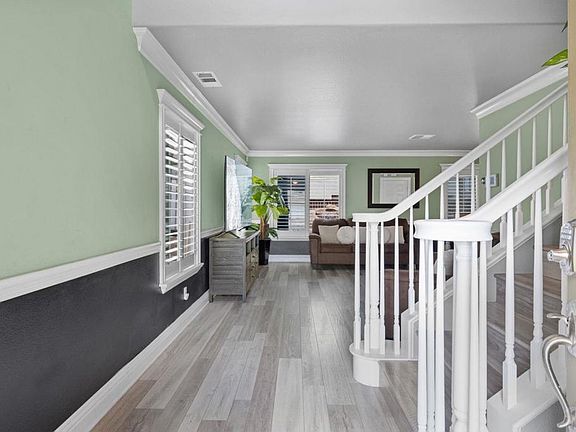 Enchantingly Elegant Two-Story Solar (Owned) Home with Blissful Poolside Oasis and Bonus Room located in West Hemet! NO HOA and centrally located just steps from Harmony Elementary School and West Valley High School, this 4+BR, 2.5BA residence emanates a welcoming aesthetic with a Spanish tile roof, classic stucco exterior, owned solar, and a neatly manicured lawn. Explore this lovingly maintained home to discover modern faux wood floors, thick crown molding, plantation shutters, an organically flowing layout, and a spacious living room. Thoughtfully designed for memorable gatherings, the open concept kitchen features stainless steel appliances, granite countertops, gas stove, center breakfast bar island, and an adjoining family room with a gas fireplace and sliding glass doors to the fully fenced backyard. Ideal for an entertainment-centric lifestyle, the resort-inspired outdoor space boasts a swimming pool with waterfall feature, hot tub, outdoor kitchen/BBQ, built-in firepit, and swaying palm trees. Perfectly sized for comfortable furnishings, the primary bedroom delivers both practicality and relaxation. Enjoy the organization possibilities of the walk-in closet, and relish in the en suite’s step-in shower and dual sinks. Each extra bedroom and one full bathroom accommodate guests, while the bonus room/potential 5th bedroom satisfies flex space desires. Other features: 3-car garage with evaporative cooler, RV Parking, laundry area, central A/C, lower property taxes, near shopping, restaurants, parks, Diamond Valley Lake and more! Schedule your tour today!