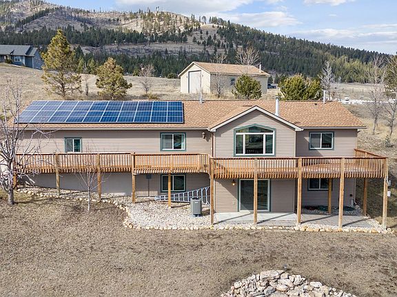 Welcome to your dream Montana retreat. Nestled on 5 pristine acres of Big Sky Country, this charming 4-bedroom, 3-bathroom home offers the ultimate in privacy and comfort. Step inside to discover a spacious and inviting interior, featuring a welcoming living room with vaulted ceilings and a wood-burning stove, perfect for chilly Montana evenings. The open-concept kitchen boasts ample counter space, well positioned appliances and a breakfast bar, making it ideal for entertaining guests or preparing family meals. Enjoy stunning panoramic views of the Sapphire Mountains and Bitterroot Valley from every room in the house. Wake up to the sight of the sunrise over the stunning landscape from the comfort of your primary suite complete with an attached bathroom and walk-in closet. Additionally two well sized secondary bedrooms with shared bath are also located on the main floor. The fully finished walk out lower level is well appointed with an additional bedroom, full bath, office, alcove and family room perfect for enjoying TV, games or as a work out studio. Outside, the possibilities are endless. Spend your days exploring the grounds, dotted with producing pear, plum, apple and cherry fruit trees, a garden area ready for your inspiration, and meandering walking paths. The heated 30 x 40 shop provides ample space for all your tools and toys, while the new greenhouse is perfect for cultivating your own fresh produce year-round. With solar panels providing sustainable energy, this home offers both convenience and eco-conscious living. The location is paramount as it is just minutes from Missoula and all daily conveniences and the four season recreation Montana is famous for. Whether you're seeking a peaceful retreat or a place to pursue your outdoor passions 16090 Dundee Rd is move in ready. Don't miss your chance to make this Montana oasis your own. Contact Cindi Hayne at 406-240-6497 or your real estate professional for more information.