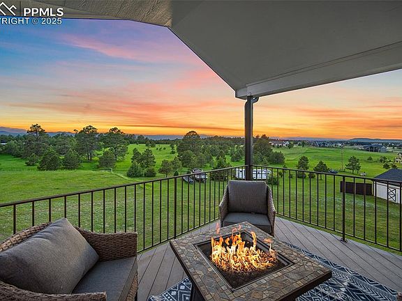 This kind of property doesn't come around very often; peaceful and beautifully updated, set on over 5 acres with stunning Pikes Peak views from nearly every window, including the walk-out basement. It feels like a retreat, yet you’re just minutes from schools, shopping, and everything you need. Inside, you'll find a spacious master suite with a luxurious 5-piece bath and jetted soaking tub, a dedicated office, and a large deck perfect for soaking in those iconic Colorado sunsets. There’s a fenced dog run with a dog door off the oversized mudroom, gas fireplaces in the living room and master, a brand new roof (2024), all-new appliances, and dual furnaces and AC units (2020). Outside, you’ll also find a large barn, complete with electricity (40' x 50' with drive through access), ideal for storing ATVs, tractors, or whatever toys and tools you need. And yes, there’s even a basketball hoop! The walk-out basement is built for entertaining with a bar, theater room, and access to the backyard. This home is truly one-of-a-kind and must be seen in person to fully appreciate all it has to offer. No HOA, just wide open space, big skies, and room to live your Colorado dream.