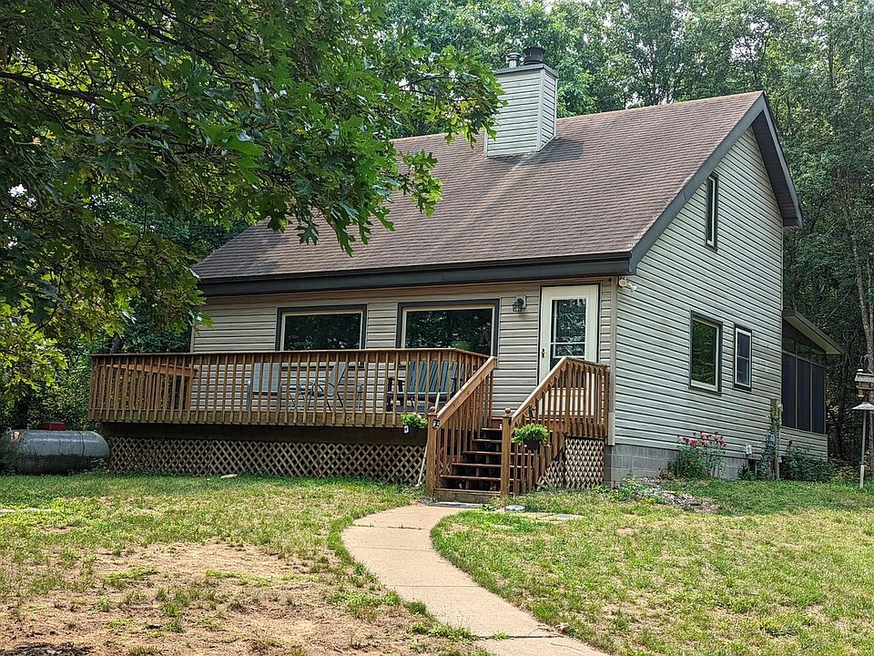 Private setting just minutes from town. This lovely 3 bedroom, 2 bath home has had lots of updates in the past 4 years. Main bath off master bedroom has been updated. NEW kitchen remodel with quartz counter tops and island seating ,light grey cabinets, new appliances and new flooring in kitchen , dining and living rooms. Floor to ceiling stone wood burning fireplace. Charming home has a spacious feel with vaulted ceilings, open staircase and balcony. The Sunroom off the kitchen is bright and cozy with lots of windows and leads out to a deck perfect for grilling or sitting in the sunshine. Basement has a workshop as does the garage. New furnace and water heater in 2019.