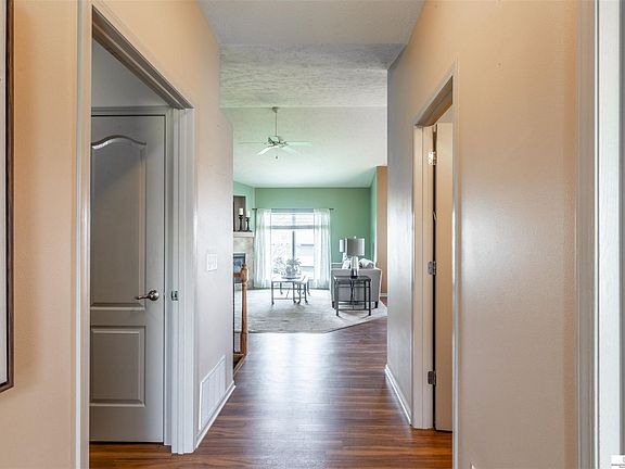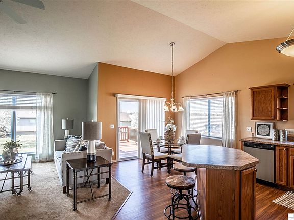 Beautiful MAINTENANCE FREE ranch home in wonderful neighborhood features 2 bedrooms on main floor. Primary bedroom has large window to let in natural light. Primary bathroom has double sinks and huge closet. Kitchen and living room have soaring ceilings. The eat in kitchen has an island that overlooks the living room which is perfect for entertaining. Nice deck which has some new boards. Lower level has large rec room with walk out to backyard with patio, bedroom, 3/4 bathroom and two storage rooms. Perennial plants/flowers are planted around entire home. One large storage room could be a great craft room, workshop, exercise room or more! Main floor laundry conveniently located by bedrooms. Gas fireplace in living room.