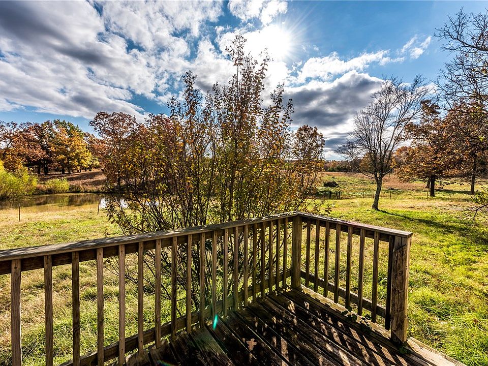 Beautiful Views! Move In Ready! Home & 10.00 acres featuring front deck, wood laminate and carpet throughout, spacious living room w/ built ins, large kitchen, abundant cabinetry & counter space, dining area, large bedrooms, tub & shower in MBath, covered porch, septic,, large pond, tree studded acres, 19.4x13.3 and 15.10x7.7 storage buildings, you don't want to miss this opportunity to own your own private country home & land!