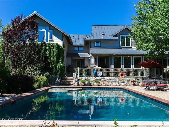Welcome to one of the most incredible properties in Nevada County. Conveniently located between Lake Tahoe and San Francisco, this lodge style home of 6,700+ sq. ft. rests atop a tranquil setting of 121 acres overlooking a private lake. This stately property features a main residence accented with imported French tiles, natural wood accents and a gourmet appointed kitchen with adjoining breakfast room. Enjoy relaxing outdoors, watch a movie in the Theater Room, entertain in the magnificent Great Room, lounge by the pool. There is a beautiful second custom residence for your guests or a permanent resident bringing the total living space to over 8,000. Eighty of the 121 acres is fenced for a private deer herd and includes a barn, riding arena, nature trails, 2 lakes with trophy bass, wildlife, and much more. The green energy features include a geo-exchange HVAC system and a solar array. We invite you to explore this mountain paradise and see all that Northern California has to offer.