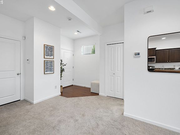 Nestled within the desirable Happy Valley Taralon Community, this stunning two-level home offers 1,679 sq ft of thoughtfully designed living space. Boasting 3 spacious bedrooms, 2.5 bathrooms, and a 2-car garage, this property is perfect for modern living. Upon entering, you are greeted by a grand foyer, providing access to the garage and showcasing the home’s exquisite Brazilian hardwood features. The main level is ideal for entertaining, featuring a spacious kitchen with a sleek dine-up bar that flows effortlessly into the living room, bathed in natural light through large windows. The elegant dining room, with its statement Restoration Hardware chandelier, sets the perfect tone for hosting dinner parties.Upstairs, the expansive primary suite is a true retreat, complete with large windows, a luxurious ensuite bathroom, and a generous walk-in closet. Two additional well-sized bedrooms and a full bathroom complete the upper level, along with a versatile nook that can easily be used as a home office. A dedicated laundry room with built-in storage adds convenience to the space. The private backyard is an oasis, featuring a Trex deck, potential for a dog run, and a charming walking path leading to the front yard. The front patio, crafted with custom pavers, is the perfect spot to savor your morning coffee while enjoying surroundings. Both front and backyards are low-maintenance, ensuring easy upkeep. The community offers a wealth of amenities, including meandering trails that connect to Nelson High School, Hidden Falls Waterfall, local parks, playgrounds, basketball courts, and a clubhouse complete with a gym and pool. Tucked away in a peaceful setting, yet easily accessible via Sunnyside Rd and I-205, this home provides the best of both worlds—tranquil living with access to the greater metro area. Located within a close distance to New seasons grocery stores, coffee shops, and restaurants, this prime location offers endless entertainment. This one is a 10!!!!