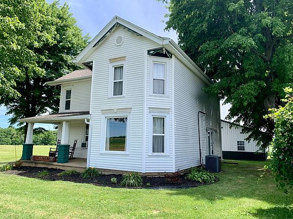 Beautifully updated farmhouse on 17+/- acres on a main  state road!  3 bedroom 2 full bath; gorgeous kitchen featuring hand crafted cherry cabinetry from the family farm, ceramic tile floors,SS appliance; counterbar and work desk; ventless gas fireplace in the spaceous living room; large dining room; 1st floor laundry room with ceramic tile; crown molding throughout; some tongue and groove ceilings; cedar closets; solid walnut doors; inviting front porch; 18x12 rear deck; 30x48 pole building 2012 with 10x30 covered back porch/gas heat/100 AMP service/concrete floor/insulated finished ceiling;34x20 tool shed open east facing; house roof new in 2020; updates in 2007 include windows,plumbing,electric, and insutlation; outdoor woodburner 2012; 1 HVAC unit on 1st floor hooked to propane and outdoor woodburner and 2nd floor unit is electric which runs the AC unit.  Approximately 17 acres in the process of being surveyed and will include hay field, some woods and frontage on 129 and Adams rd.