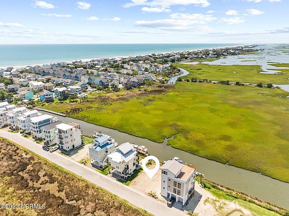 Sweeping spectacular views of north to south featuring access to the intercoastal waterway and sound from this canal front lot. Ready to build with boat dock, seawall and lift in place which is functioning currently. Enjoy the access to the water for great family fun activities or just enjoy a day on the deck or dock for tons of relaxing. Also, easy access to the beach with the deeded beach access at the end of the street just a nice walk or quick golf cart ride away. There is also a day dock within the HOA. Ready for you to select the perfect plan for your island retreat. You can see for miles the beautiful scenery and easy access to the ocean and beach nearby. Survey showing building envelope and CAMA permit in hand for buyer's immediate use.