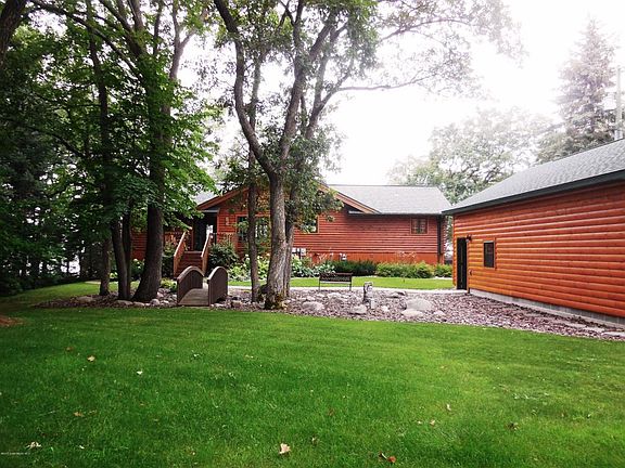 Otter Tail Lake - DREAM HOME!! City water AND 100' feet of perfectly elevated, expansive sand beach & green space with moderate tree coverage and abundant landscaping. Gracious exterior seating area leads to a foyer showcasing the spectacular beauty of this well maintained 3+ bed/4 bath, 3128 s/ft home masterfully constructed in 2002/2003. Beautiful log home, boasts of Hickory kitchen cabinets, eat in counter, informal dining, open living spaces with walls of magnificent windows to the lake.