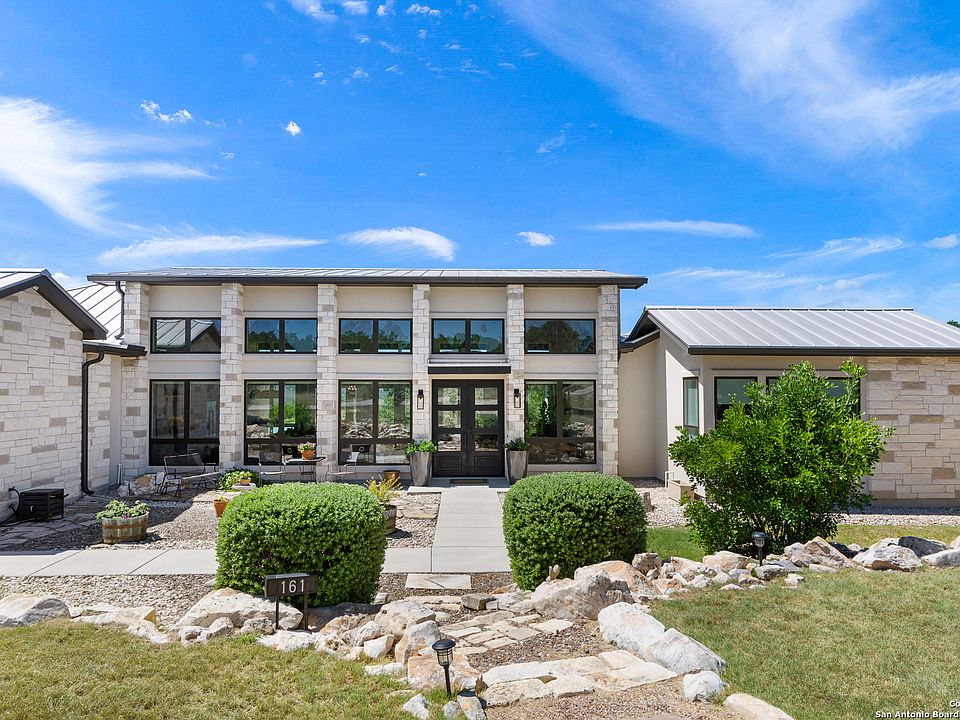 Welcome to the Texas dream! Showstopping custom home in the gated Latigo Ranch subdivision, offering 2,451 sq ft of living space on a private 2-acre lot overlooking the best views the Hill Country has to offer. Built in 2020, this 3 bedroom, 3.5 bath home features an open floor plan with high ceilings and abundant natural light. The chef's kitchen is equipped with custom cabinetry, an oversized island, 36" Z-Line six burner gas cooktop with an electric oven, and stainless steel appliances, opening to spacious living and dining areas that flow seamlessly to a covered patio-perfect for entertaining or relaxing outdoors. The primary suite includes a spa-like bath with soaking tub, walk-in shower, and dual vanities, while each secondary bedroom has its own en-suite bath for added privacy. Additional highlights include a 3-car garage, energy-efficient construction, and wood-look tile flooring throughout. Outside, you'll find a 12'x24' shop with a 60 amp electric service, lights, heat + A/C unit, and ceiling fan. Enjoy the tranquility of a large lot with mature trees in a community of luxury homes on acreage, with paved roads and secure gated access. Conveniently located just 10 miles from Boerne with easy access to Hwy 46 and Interstate 10, this property combines peaceful country living with quick access to shopping, dining, and top-rated schools. Schedule your private showing today to experience all that this exceptional home has to offer.