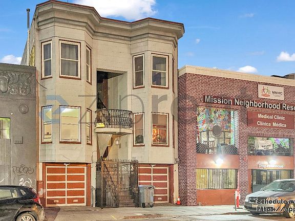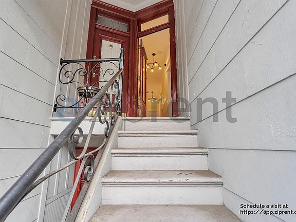 Welcome to a charming and spacious property located at 161 Capp Street in the vibrant heart of San Francisco's Mission District. This classic home boasts a welcoming entrance with a beautifully ornate door, leading into a long hallway accented by elegant light fixtures and hardwood floors. The living area is bright and inviting, featuring large bay windows and a stunning decorative fireplace, perfect for cozy evenings. High ceilings add to the airy feel, while the intricate woodwork reflects the home's historic charm.