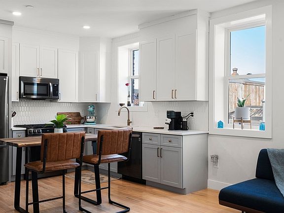 Experience luxury living in this stunningly renovated Jeffries Point condo! The classic brick exterior welcomes you into a sun-filled upper-level unit with gleaming hardwood floors throughout. The open-concept layout seamlessly connects the living, dining and kitchen areas, creating a perfect space for everyday living. Down the hall, you'll find two spacious bedrooms and a beautifully designed bath, featuring a custom tile shower and elegant fixtures. The primary bedroom, with a walk-in closet, is peacefully situated at the rear of the unit. Tucked away on a side street in the heart of East Boston, this home offers easy access to Jeffries Point’s parks, the Blue Line and many top-rated restaurants. East Boston is a true gem of the city!