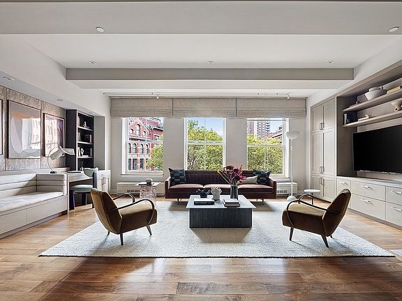 This spacious three-bedroom, two-and-a-half-bath duplex spans over 2,300 square feet and is ideally situated just across from Duane Park. A private elevator opens directly into a bright great room, highlighted by a wood-burning fireplace, beamed ceilings, and oversized windows that frames serene treetop park views.