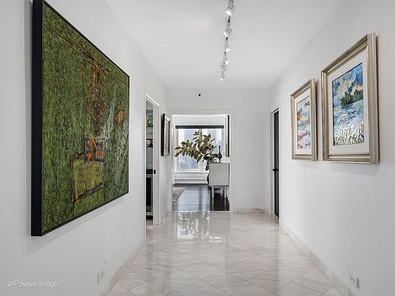 Set high above the Magnificent Mile in the esteemed Olympia Centre, this beautifully appointed corner residence offers generous proportions, thoughtful design, and sweeping southeastern views of the lake and skyline. A gracious entry with marble flooring opens to a large-scale living and dining space filled with natural light from wraparound windows, creating an ideal setting for everyday living and entertaining. The kitchen is bright and elegant with marble floors, a custom bar, and a breakfast area overlooking the city. The intelligently designed split floorplan offers exceptional privacy, with an expansive primary suite featuring space for a sitting area or home office, two large walk-in closets, and a marble bath with soaking tub and separate shower. The secondary bedroom is equally spacious with its own recently renovated en-suite bath. A powder room, full laundry and storage room, and custom details throughout complete the interior. Residents enjoy the full-service lifestyle that makes the Olympia Centre so desirable, with 24-hour door staff, concierge, an indoor pool, shared roof deck and fitness center, all in a prime location just moments from the lakefront, renowned museums, and Chicago's most iconic restaurants and shopping. On-site garage parking available.