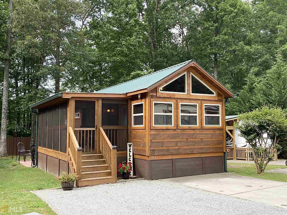 This cozy country cabin is located in the gated Elkmont Community. This park model offers beautiful exposed beams with vaulted ceilings. Along with a screened in back porch for family gatherings. Walking distance to the community pool. Elkmont is covenant to Cleveland, Helen, and everything the Georgia Mountains have to offer.