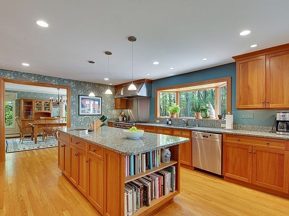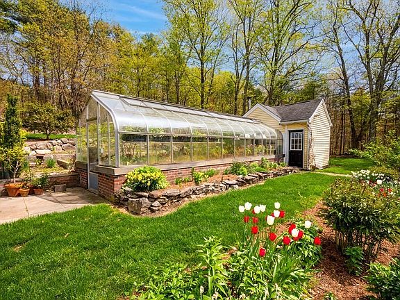 Welcome to Shrangi-la! Pride of ownership for 25 yrs, meticulous colonial nestled at the end of a cul de sac - surrounded by sensational grounds & gardens. Gorgeously renovated eat-in chef's kitchen w/ oversized center island, top-of-the-line appliances, granite counter-tops & custom wood cabinetry - great for entertaining! Open 1st floor w/ hardwood floors throughout. Kitchen overlooks the vaulted cathedral ceilinged family room w/ wood burning fireplace, custom walnut built-ins, and french doors pouring out to the deck overlooking the gardens beyond. Spacious primary suite w/ spa-like bath inspired by travels to Asia boasts top of the line soaking tub, shower, radiant ht. Updates galore incl Buderus furnace, roof, windows & AC compressor. Layers of gardens and trees plus a serene waterfall cascading into a lotus and waterlily pond - you will be wowed by every vista. Plus your own greenhouse! Abutting conservation land & trails, yet a quick drive to Carlisle Ctr. Move right in!