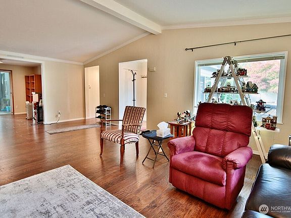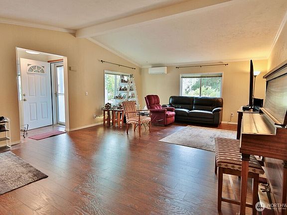 Welcome to your serene retreat in Parkwood Estates, a peaceful 55+ community perfectly situated between Sequim and Port Angeles. This well-maintained triple wide manufactured home boasts an inviting open floor plan accentuated by vaulted ceilings and level flooring throughout. The standout sunroom opens seamlessly onto a spacious back deck, providing an ideal space for entertaining guests or enjoying quiet moments amidst nature. Living here means convenient access to the beloved Sunny Farms Country Store. Whether you’re downsizing or seeking a vibrant community to call your own, this home perfectly blends comfort, style, and accessibility. Explore the unique charm and vibrant lifestyle opportunities that await in Parkwood.