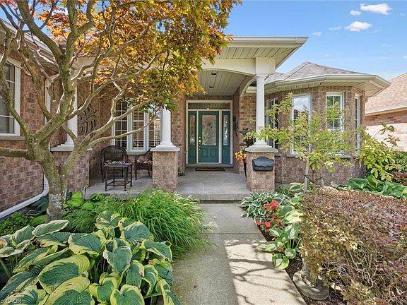 Welcome to Foxboro Green, one of the area’s most sought-after Adult Lifestyle Communities, just 10 minutes from Kitchener-Waterloo and nestled beside Foxwood Golf Course. This charming Pine model bungalow offers over 1,400 sq ft finished living space combining a perfect blend of comfort and convenience with 2 bedrooms, 3 bathrooms, a 1.5-car garage,and a partially finished basement. Step inside to a bright foyer leading to the spacious living room featuring a vaulted ceiling, California shutters, and a cozy gas fireplace. The separate dining room also showcases California shutters, while the updated eat-in kitchen is highlighted by quartz countertops, crisp white cabinetry, hardwood flooring, and direct access to the deck. A French door opens to your private outdoor space, where you can relax on the deck and take in the view of manicured greenspace. Whether it’s your morning coffee or an evening unwind, you’ll also love the year-round versatility of the covered front porch. The primary suite includes a walk-in closet and a 3-piece ensuite, while convenient main floor laundry adds to the ease of daily living. The lower level extends your space with a finished rec room and 3-piece bath, plus a large unfinished area for storage or future potential. Life in Foxboro Green offers more than just a home—it’s a community. Residents enjoy access to the Recreation Centre with amenities such as an indoor pool, sauna, whirlpool, tennis/pickleball courts, fitness room, library, party space, and more. With 4.5 km of scenic walking trails, every day offers an opportunity to stay active and connected. Don’t miss your chance to experience this welcoming lifestyle in a serene setting—book your private showing today!