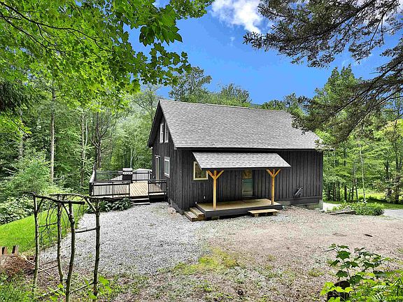 If you've been looking for that special mountain home in Vermont, this refined timber-frame cape just might be the answer. The 18-acre parcel is mostly wooded for the ultimate in privacy, yet conveniently located just minutes from Killington and Pico resorts. The covered front porch leads to an open kitchen/dining area with exposed hand-hewn posts & beams repurposed from the original on-site barn in the 1800s. The stylish modern kitchen features original hardwood floors, stainless appliances including a premium Bertazzoni gas range, an elegant black farmer's sink, quartz countertops and a convenient breakfast bar. The kitchen leads to a gracious living room on the north and a fabulous deck with wonderful winter views on the south, a perfect place for outdoor dining or to socialize with friends. Nearly all surfaces and components are new or improved, including a full walkout level remodel, which created a spectacular mudroom entrance and a generous laundry room complete with drying racks, folding table and trendy sliding barn doors. The walkout level also offers a full bathroom, an exercise room that could serve as a home office or family room and an 18x6 gear room with separate entrance to store all your favorite toys and equipment and keep the main house clutter free. This exceptional residence in the heart of the Green Mountains won't last long, so please call for a private showing today.