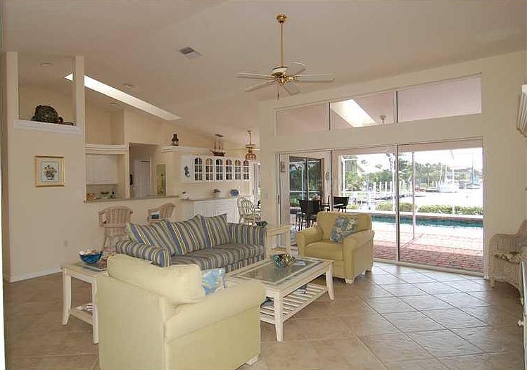 Fabulous view from this lovely home and lanai looking down the canal, 5 minutes to open water by boat. This terrific 3 bedroom 2 bath home has 2400+ ft under air. Kitchen is open to great room, and breakfast room and views to pool . Roomy dining room. All open to lanai and 50 ft lap pool with recently installed brick pavers. Plenty of room for entertaining and enjoying your heated pool and great view! The master bedroom is very large and has access to the lanai, walk in closets and ensuite bath with large jetted garden tub, separate shower and dual sink vanity. The 2 guest bedrooms share a 2nd bath (access from the bath to lanai) also there has been a lovely and large family room added with electric fireplace and inside terrarium (charming inside garden spot, plenty of windows to enjoy the view and also access to the lanai and pool area. Lots of covered space on the lanai plus a great pool that is 50 ft long for swimming laps, but is also wide enough for a good splashing fun time!! The 3 car garage is over sized and deep and the 3rd bay is a bit longer and can accommodate a 27 ft RV and still has plenty of room for your kayaks and canoes. This wonderful home is light and bright and spotlessly clean. Don't miss it! It is lovely!!!