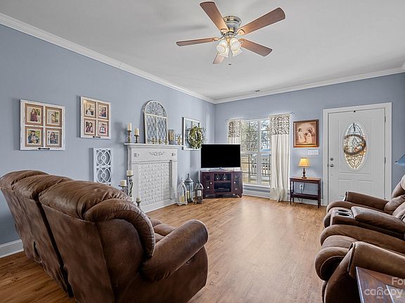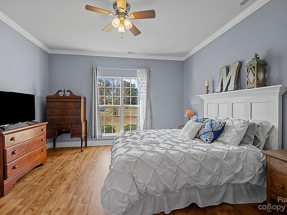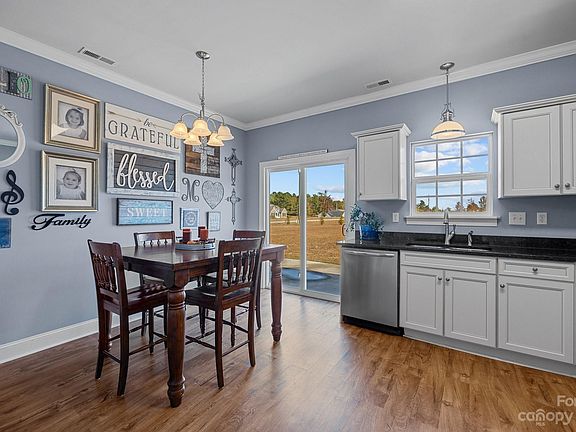 Welcome to this charming corner lot ranch-style home located in a picturesque setting. Lovely home is a breath of fresh air, w/its charming covered front porch & delightful surroundings. Open floor plan exudes warmth & character. Neutral paint palette & crown molding + beautiful vinyl plank flooring grace the living space, providing style & easy maintenance. Large kitchen w/pantry, stainless appliances, custom cabinets + granite counters. Living area accentuated by a charming decorative fireplace w/mantel, perfect for creating cozy moments. Spacious dining area perfect for hosting family gatherings & entertaining friends. Split bedroom plan features a primary ensuite w/walk-in closet, garden tub/shower & vanity w/granite. Additional full bath is equally impressive w/ beautiful tile inlay + double sinks w/ granite counters & plenty of storage. Laundry room w/cabinetry helps keep your home organized & opens to the attached carport providing shelter for your vehicle! Don't miss this one!