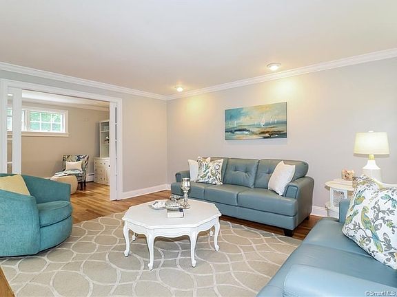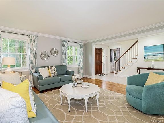 Enjoy country living at its best! Light and bright with a modern vibe, this spacious 4 bedroom, 3.5 bath colonial is stylish and move-in ready. An updated kitchen with white cabinets, granite counters and stainless steel appliances opens into a family room with a gas fireplace and flows into a large 4 season sunroom giving a nice open feel. This stunning sunroom, with a wood stove, features a vaulted ceiling with walls of windows and sliding glass doors bringing the outdoors in. It leads out to a large maintenance free deck with an outside enclosed shower. The first floor also includes a living room with French pocket doors leading to a dedicated office, a formal dining room, a butler's pantry and a well organized mudroom and half bath. The second level features 4 spacious bedrooms including a master suite with a remodeled full bath and walk-in closet and another remodeled full bath. The lower level rec/play room features a full bath and plenty of storage. Meticulously maintained. Gleaming hardwood floors throughout. Freshly painted inside and out. Central air. Security system. Wired for a generator. Award winning Amity School District. This warm and inviting home has something for everyone. Set on 1.76 acres on a cul de sac. It offers a great yard with plenty of space to play and privacy to enjoy. Conveniently located within easy access to New Haven, Yale and major highways. A wonderful place to call home!