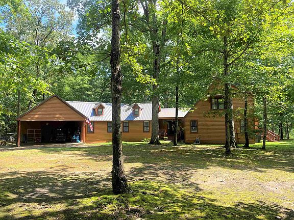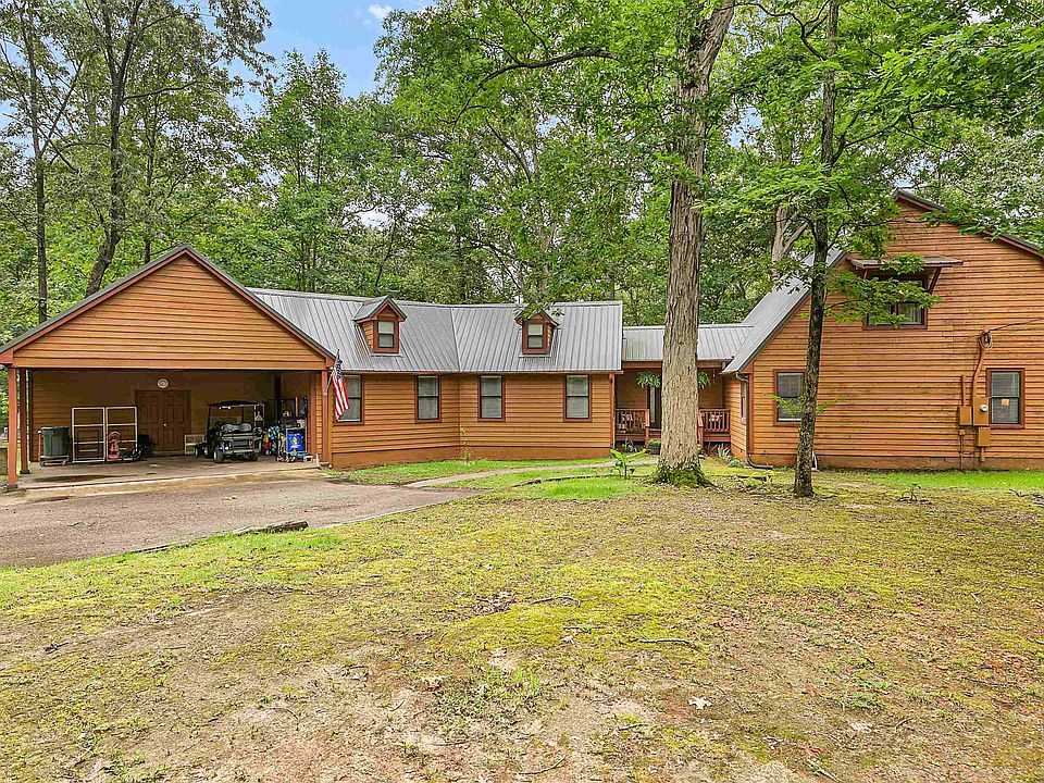 REDUCED -This beautiful home sits on over 2 acres with a view of the lake. Plenty of space for family & friends with 4 br, 3 baths, plus an office. Tons of natural light in the open living area w/ vaulted tongue & groove ceilings & gas fireplace. The kitchen includes granite, stainless appliance and a new island! 2 primary bedrooms, one w/ an attached office. Outside is a carport, new metal roof, a wraparound porch and screen porch to enjoy the lake view & peaceful surroundings this home offers!