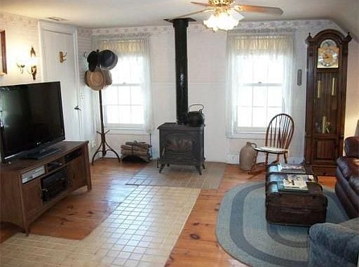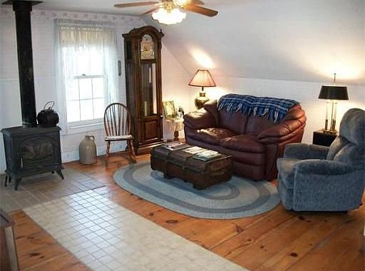 Third floor beautiful vintage apartment was added in 1992... skylights, vaulted ceilings, wood stove, 2 bedrooms, pull down stairs to attic for storage and deck. Washer/dryer hook up included in unit. Surrounded by a level 1/2 acre yard.