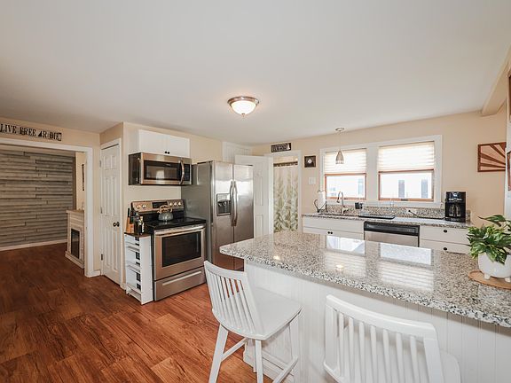 OPEN HOUSES CANCELLED! Sun drenched New Englander with a MASSIVE yard. All the charm and character of a traditional farmhouse yet filled with the modern updates that you want. Wrap around farmer's porch has been made into desirable three-season space with the addition of vinyl windows. Side porch overlooks the fenced in yard. Enter into the kitchen with it's granite countertops and shaker cabinets. In the back corner is the first floor laundry room. Moving toward the front, enjoy the open concept floor plan that welcomes you into the living room. Rounding out the first floor is the dining room, a first floor bedroom, and a full bath. Upstairs you'll find the primary bedroom with ensuite 3/4 bath. Two more bedrooms share the second full bath. All bedrooms feature abundant closet space not often found in homes of this vintage. No farmhouse would be complete without a barn and this one does not disappoint. Prior owners reinforced the floor so it's ready for whatever your hobbies require. Storage space, workout equipment, what's your pleasure? The fully fenced yard gives an amazing sense of privacy in the ultra-convenient location.