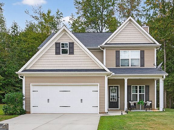 Welcome Home to Banks Co! Nestled in a quiet subdivision with NO HOA, this charming, well-maintained home offers both comfort and convenience. The private backyard is perfect for entertaining - enjoy evenings by the firepit, or unwind on the back patio while overlooking the serene, wooded backdrop. Start your day with a cup of coffee on the rocking chair front porch, or find your own tranquil space inside. The kitchen is a chef's dream, boasting elegant granite countertops, a spacious pantry, and an open view to the cozy living room. The first level features durable laminate flooring, and the inviting living room includes a wood-burning fireplace, ideal for chilly nights. Need a quiet workspace? The designated office just off the foyer is perfect for working from home, or it could easily serve as a peaceful sitting area. Upstairs, you'll find the spacious master suite with a trey ceiling and French doors that open to a luxurious master bath. The en suite includes a double vanity, a large soaking tub, a separate shower, and a generous walk-in closet. Two large secondary bedrooms, a full bath, and a convenient laundry room complete the second level. Don't miss the opportunity to make this peaceful retreat your new home.
