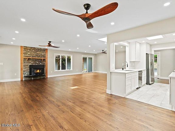 Two homes completely renovated to the finest of detail. Conveniently located near I90 & in Award Winning East Greenbush School district. Main Home features Four bedrooms, 2 Full Bathrooms. New kitchen w/ quartz countertops, New GE Appliances. Hardwood floors, exposed beams, recessed lighting & skylights throughout home. Huge LivingRoom w/ New zero clearance Wood burning fireplace w/ stone &cherry wood surround. PrimarySuite w/ private patio access. Huge full basement w/ Laundry. Separate In Law Guest Home w/ new fully applianced kitchen- open to LivingRm & Dining. Lovely PrimarySuite. Additional Laundry Room. You truly, must see this home, to appreciate the architectural features. Near Hudson RailTrail parking, Minutes to Regeneron, MassPike. Potential Air BNB income.Endless Possibilities