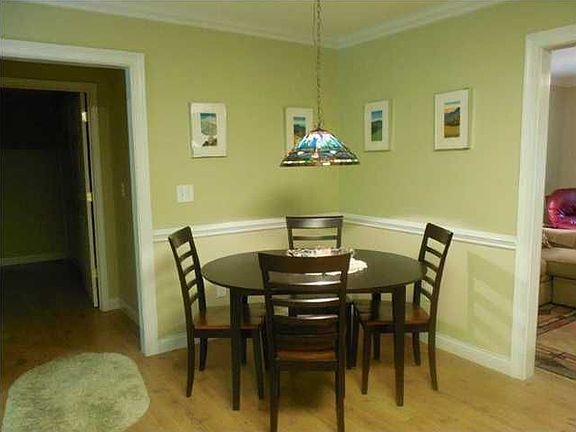 Lovely home on large level lot with wooded back yard for privacy. Wet weather creek along side and back of property. Home is Hardie Siding and mountain stone on the exterior. High end laminate flooring throughout for easy maintenance. Bright and airy great room is cozy and located off of spacious kitchen with large dining area. Stainless steel appliances and plenty of cabinets and counter space as well as an extra large pantry. Laundry room off of kitchen with washer and dryer that stays with home. Big master bedroom off back of home featuring private bath with dual sinks and walk-in closet. Two additional bedrooms and a two-car garage. Front and side yard feature established landscaping and concrete drive with additional turnaround. Great home that is move-in ready!