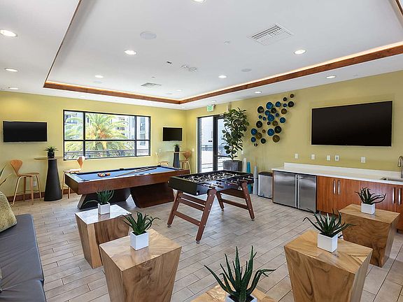 Outdoor fireplacePrivate patio or balconySoaring ceilingsQuartz countertopsStainless steel appliancesResort-inspired poolIn-unit washer and dryer