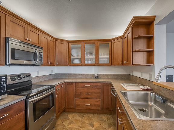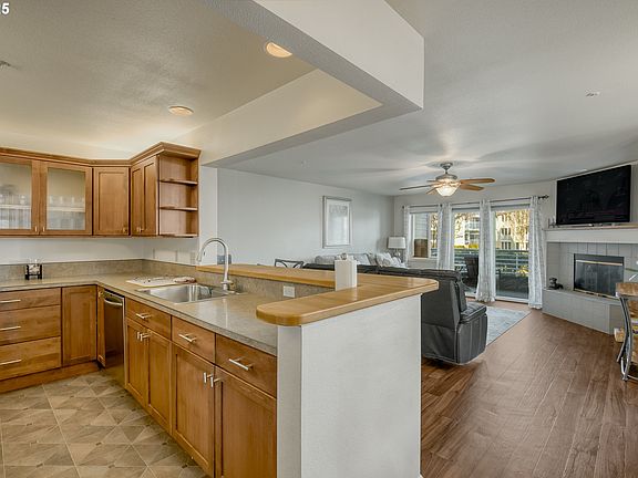 Gorgeous 1 level, river front view end unit condo, with 2 master bedrooms! This end unit condo is the largest 2bed-2bath in the complex and it's located on the main level! This unit was remodeled in 2016. Updated flooring throughout, Kitchen and living room features an open concept, there's a sliding patio door next to the fireplace leading to patio #1 with storage and views of the river/city. Great room has space for a true dining room area, large windows bringing in natural light throughout. Stainless steel appliances included, wood silent close kitchen cabinets & an eating bar. Choose which bedroom you would like as your primary, some bedroom features include a patio, attached bathroom and walk in closet.This end unit comes with ideal deeded parking in the covered garage, guest parking available too. HOA covers Garbage, water, sewer, landscaping, 2 pools(1 indoor 1 outdoor), Deeded parking, guest parking, weight rm, spa, sauna etc. This is the perfect home for entertaining or relaxing, walking distance to retail shops, food & river!