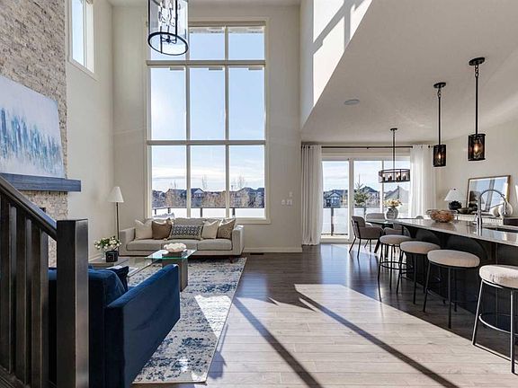 Welcome to 161 Kingsmere Cove SE, where thoughtful design meets refined living. Nestled in a quiet cul-de-sac, on an pie shaped lot just shy of 9,000 sq. ft., this pristine walkout home backs onto a tranquil pond and walking path. Offering picturesque views, privacy and a safe family-friendly connection to nature; this home captivates as you enter. Inside, a soaring 22’ ceiling frames the striking stone surround gas fireplace, filling the open concept layout with warmth and natural light through the expansive windows. The chef-inspired kitchen features granite countertops, soft-close cabinetry, a walk-through pantry, and a large island overlooking the dining area; perfect for cooking, conversation, and connection. The thoughtful layout lets you flow from inside to the balcony, which is complete with two gas lines. Here you can unwind with southwest-facing sunset views over the water. Upstairs, you'll find three generous bedrooms including the primary, a bright bonus room and laundry. The primary oasis offers vaulted ceilings, a spa-like 5-pc ensuite with heated floors, soaker tub, six jet shower, dual sinks, and walk-in closet. The upper laundry adds convenience with its sink, shelving, and countertop workspace. The finished walkout basement expands living to 3,168 sq. ft., ideal for a 4th bedroom, gym, or office space, and includes a 3-pc bath featuring heated floors and a large recreational room for board games or watching your favourite sports team! Outside, you'll love the covered patio, a show stopper for entertaining and lounging alike! This outdoor sanctuary is fully equipped with sprinklers, privacy walls, a gas line, hot tub rough-in that opens to a fully fenced yard including a dog run, a custom shed to match the home, a fully manicured lawn with mature trees, and your own private gate to the pathway for evening strolls in the fall. You can also enjoy skating with your family and neighbours on the pond in winter! This home has received over $160,000 in upgrades since 2019; including new roof, shelving & organizers in the heated triple garage with space for a lift, furnace, A/C, powered shades with solar charging, smart security, composite siding, 6-zone built-in speakers & so much more. No detail was missed in this stunning masterpiece. It blends sophistication, comfort, and lifestyle in perfect harmony! All of this comes with easy access to great schools, parks, playgrounds, shopping & the new HWY 2 intersection at 40th Avenue.