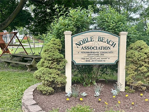 LIVE THE LAKEFRONT LIFESTYLE! This is your chance to be part of the Noble Beach Association, a welcoming neighborhood with access to a members only private beach club. Membership includes use of the clubhouse, lakefront grounds, private beach, and easy water access. The community also offers a ball field, playground, and park benches perfectly positioned to enjoy breathtaking sunsets and expansive lake views. This charming cape cod home is only 1/4 mile to the beach club, and features a fantastic floorplan (SEE PLANS IN PHOTOS) with a FIRST FLOOR BEDROOM AND FULL BATH. Spacious living room with hardwood floors, bay window, and a large eat-in kitchen. Upstairs are 2 more large bedrooms and a convenient half bath. Partially finished basement with rec room space. New Boiler and hot water tank were just replaced. The lovely yard includes a peaceful, private back garden, a rare find in an urban setting. Enjoy a unique edible landscape with elderberries, currants, pawpaw trees, rhubarb, and espaliered grapes. An oversized gardening shed is perfect for storage and working on projects. The home also includes an attached 1-car garage. Located just a short walk from grocery stores, coffee shops, restaurants, the public library, and public transit, this home combines convenience with community. Downtown Cleveland is also an easy drive. No interior pictures per seller request. Home is point of sale compliant, violation free. Membership to the beach club is optional and has a nominal annual fee.