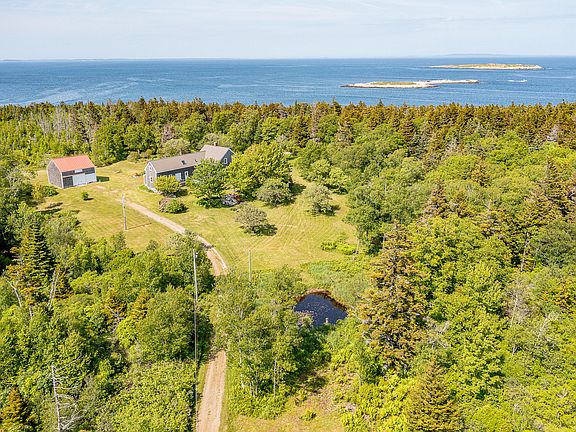Step away to the beauty and quiet of Matinicus Island. Situated over 20 miles off the coast of Midcoast Maine, this private 20-acre oceanfront compound features a year-round main house and a seasonal guest cottage, all set along 1,000 feet of bold oceanfront. The year-round main home, built in 1993, blends modern comforts with restored antique charm. A bright kitchen offers honed slate counters, an eat-in island, oak cabinetry, and tile floors. A Crawford cookstove anchors the dining room with red oak wainscoting. The back parlor includes a wood-burning fireplace and original mantel, while the living room features a built-in TV hutch and access to the curved-ceiling formal entry with black and white tile flooring. A curved tongue-and-groove ceiling continues to the second floor where four bedrooms offer charming period details, including a water-view primary bedroom and a third guest room with a boat-inspired daybed. A full bath with separate tub and shower and a half bath complete the upper level. Oak flooring runs throughout much of the living spaces. The seasonal guest cottage, completed in 2024, enjoys expansive ocean views from its oceanside deck. Inside: two bedrooms, two full baths, a full kitchen, dining area, living room, and a clever under-stair built-in daybed. An outdoor shower and a rolling lawn lead to the bold shore and a firepit with panoramic northwestern ocean views, perfect for unforgettable sunsets. Attached and freestanding barns, a garden shed, and a small pond complete this exceptional island retreat.