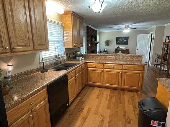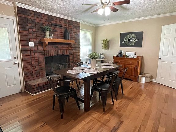 Great buy on this brick house with almost 2 acres of land. This 2078 sqft house was remodeled about 6 years ago with new kitchen, baths, windows, roof, HVAC, floors, etc. Huge family room that was previously a garage now with built-in bookshelves and wood burning FP. Updated kitchen w/HW floors and open to cozy 2nd family room or dining with 2nd wood burning FP. Separate living room w/HW floors. 3 nice sized bedrooms all with good closet space. Both baths are tile. Covered front & back porches.