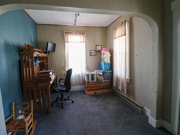 Sitting on a corner lot in Dunkirk, IN, this home is 1388 sq ft. The wrap around porch, back patio, large corner lot, and 2 car garage with storage and a work bench gives ample space for gatherings. The home has 3 bedrooms, 1 bathroom, as well as an office space and the laundry room is located off the kitchen, which has an added pantry or storage room.