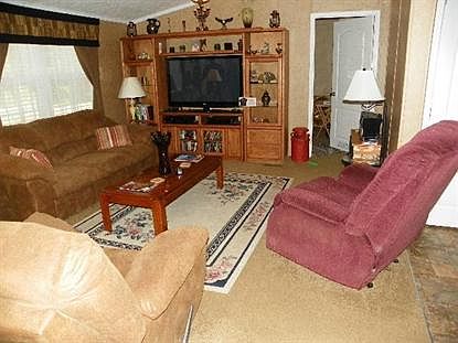 Open floor plan with vaulted ceiling in living room/kitchen; split floor plan; eat-in kitchen with nice cabinets; three bedrooms, 2 baths. This 2011 doublewide shows like new on the inside and sits on a beautiful lot just minutes from boat ramp.