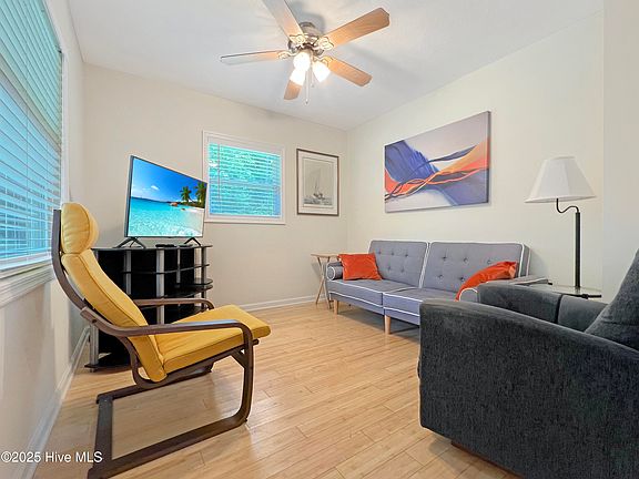 Charming 2 bedroom, 1 bath home located in the waterfront community of Holiday Island. This elevated home features a bright and open living area on the second floor, complete with a bonus space perfect for an office. The lower level offers ample storage space for all your tools, toys, and gear. Enjoy easy water access with a community boat ramp and a scenic clubhouse beach area - perfect for kayaking, fishing, or simply relaxing by the Albemarle Sound. Optional community pool access is available for an additional fee.
