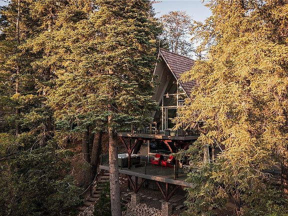 Discover this beautifully remodeled lakefront retreat tucked away on one of Lake Arrowhead’s most sought-after streets. With sparkling lake views, designer finishes, and a private single-slip dock (Dock #S26), this 3,720 sq ft home offers the perfect blend of modern luxury and mountain charm. Step inside to a bright, open-concept double A-Frame with expansive windows and fluid outdoor spaces. The main-level great room centers around a dramatic stone fireplace with the lake as the backdrop and sliding doors opening onto an entertainer’s deck overlooking the water. The gourmet kitchen features high-end appliances, a large island, built-in dinning banquette and adjacent BBQ patio—ideal for hosting gatherings year-round.