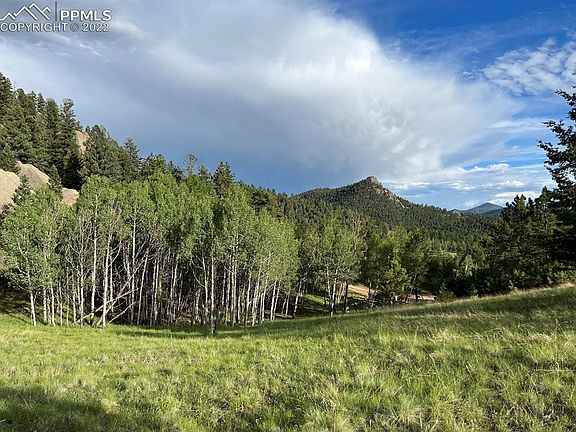 Absolutely beautiful lot with a gorgeous huge rock formation bordering the eastern side of it! This lot has everything you would want when you think of a rural Colorado mountain lot! It has a view of the stunning Sangre De Cristo Mountain Range, its own private "breath taking" rock formation bordering it, a gently sloping meadow surrounded by a mature Aspen Forest, plus it has a great building spot! Being located at the end of a cul de sac provides a very low traffic flow and that much needed privacy. Lots like this one do not come on the market very often. This one is really special! The sunsets are absolutely amazing! Lots like this are getting few and far between in Teller County. Located near absolutely amazing hiking, four wheeling, gold metal fishing and less than 30 minutes to amenities. The gambling entertaining town of Cripple Creek is less than 30 minutes away! Skiing is less than 1 1/2 hr away!