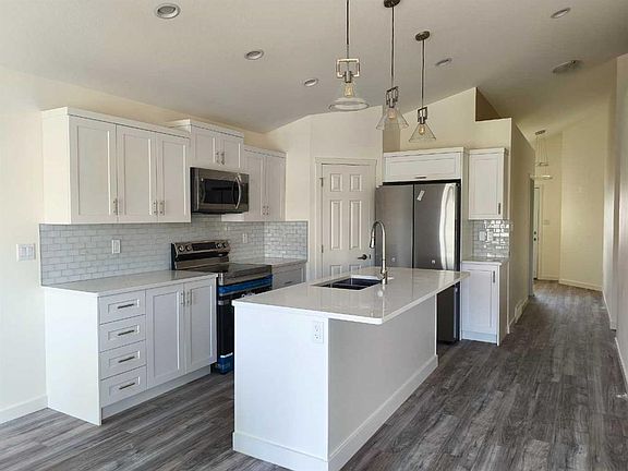 Stunning brand-new 6-bedroom bungalow with walk-out basement in prestigious Riverstone! This thoughtfully designed home combines modern style, comfort, and functionality. The main floor features soaring vaulted ceilings, an open and sun-filled layout, quartz counters in the kitchen, stainless steel appliances and 3 bedrooms. The spacious primary suite offers a luxurious 5-piece ensuite with double vanities, tub, 5-ft shower, and walk-in closet. Central A/C and laminate flooring at both levels. The fully developed bright walk-out basement includes a large family room, wet bar, storage, 3 bedrooms, 1.5 baths, and a second laundry. With dual-zone heating and separate thermostats, you’ll never worry about a cold basement in winter. Two laundry rooms provide independence and convenience for each level. Enjoy a flat backyard with back lane access, perfect for outdoor living, gardening, or extra parking options. Combining modern design, practicality, and elegance, this Riverstone bungalow delivers everything your family has been looking for—in one of Lethbridge’s most desirable locations!