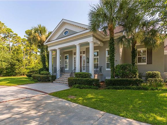 Stately European Home built in 1995 and renovated to perfection. Elegantly casual, move- in ready. Main level includes entrance hall, great room with fireplace, formal dining room, giant chefs' kitchen with breakfast room and family room, grilling room and laundry room. Main floor master suite with sitting area and spa bath, den and half bath. Most open to covered porch and walk out pool. 2nd floor has 4 large bedrooms and 3 baths and a covered porch with views of golf course and pool. 3 car garage with private side entry.Membership in The Island Club is available and includes The Retreat Golf Course, a 19 hole classic course, Full Service Clubhouse, Tennis, Swim and Pickle Ball. Membership Rights to The Sea Island Club are also available.