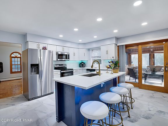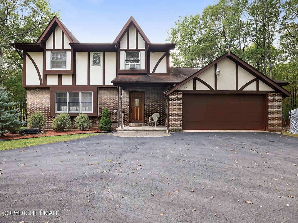 Welcome to this beautiful Tudor-style 4-bedroom, 3-bath home offering comfort and timeless character in a prime location. The gourmet chef's kitchen, featuring granite countertops, stainless steel appliances, and custom cabinetry, is perfect for family meals or entertaining. The Sunroom provides a bright retreat overlooking a private deck and Sparkling In-ground Pool. Enjoy gatherings in the elegant formal dining room and the convenience of a two-car garage. The unfinished basement gives you the opportunity to make it your own, whether for storage or future living space. Set on 1.4 acres of tranquility, this home blends practicality with charm. Located just minutes from Mount Airy Lodge, Camelback Ski Resort, Wineries, The Crossings, and Kalahari, and with easy access to I-80—your ideal Pocono retreat awaits! STR allowed in HOA.