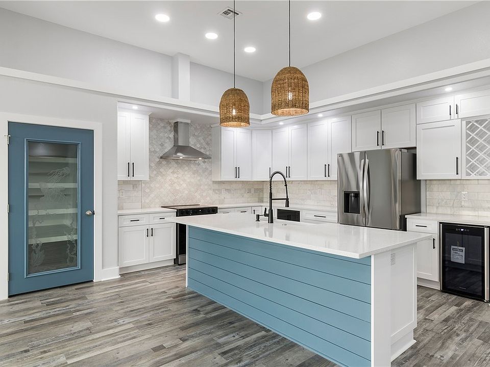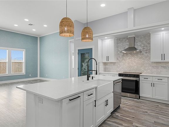 Discover this stunning 3-bedroom, 2.5-bath, new construction coastal home offering modern elegance and exceptional upgrades throughout.  Built by DBJ Coastal Investments, no detail was spared.  From the moment you step inside, you'll be captivated by the tall ceilings, luxury vinyl plank flooring, electric fireplace, and custom etched glass accents. The open-concept living space features ship lap detailing, a gourmet kitchen with quartz countertops, a farmhouse sink, and stainless steel appliances, including a wine chiller and a side-by-side refrigerator.  Each bedroom is generously sized, and the spa-like bathrooms feature beautifully tiled showers and tub surrounds. The exterior is equally impressive with a fenced yard, a lush lawn maintained by a sprinkler system, and a dedicated BOAT GARAGE.  Blinds are already installed for your convenience.  This move-in-ready home is a must-see! Don't miss your chance to enjoy coastal living at its finest!