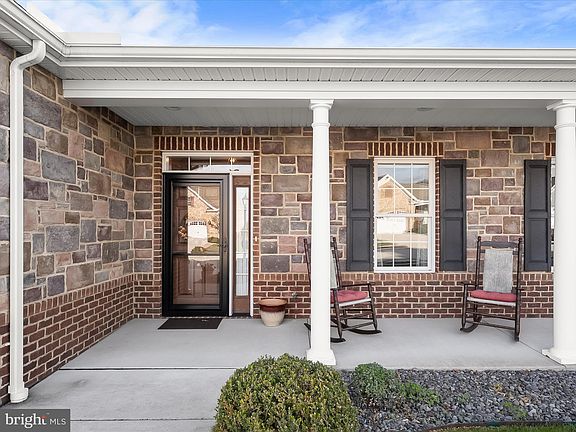Welcome to this charming rancher in the heart of the Littlestown community of Adams County! This beautifully maintained home features a classic brick and stone exterior with landscaped grounds and a welcoming front patio. Step inside to find hardwood floors that flow through the main living areas, where the gas-burning fireplace with dentil accent molding serves as the perfect focal point. The open-concept design leads seamlessly into the kitchen, complete with 42” cabinetry, a decorative backsplash, display and wine storage, ample counter space, and stainless steel appliances. The dining area opens to a screened-in patio overlooking the fenced backyard and additional patio, ideal for relaxing or grilling. The primary bedroom suite offers plush carpet, high ceilings, custom blinds, and an en-suite bath with a double vanity and convenient access to the walk-in closet and laundry area. An additional bedroom and den/possible guest room, and a full hall bath complete the layout. Additional highlights include an attached two-car garage with a floored attic for all your storage needs, and proximity to major commuter routes such as PA-194, US-15, and Baltimore Pike. Perfect for those seeking single-level living with modern comfort and timeless charm!