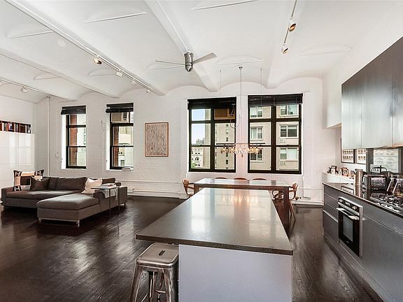 This rarely available brilliantly designed high floor loft in the Jensen Lewis building features a bright sunny southern exposure, 12' barrel vaulted ceilings, huge windows and original brick walls. This stunning large "L" shaped loft is perfect for gracious living and entertaining. A newly renovated kitchen has custom cabinetry, black granite counters, a built-in subzero refridgerator, a SMEG oven and dishwasher, and a Grohne faucet. The spa-like bathroom has a double sized shower, slate floors, a white marble sink and Grohne fixtures. The private yet open sleeping area has custom built-in walk in closets. For extra convenience, there is a laundry with additional storage. This impeccable loft is on one of Chelsea's prettiest and most convenient blocks, in a most coveted, financially sound coop.