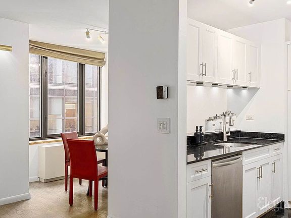 The building's extensive amenities are included at no additional cost and feature a health club with a 75-foot swimming pool, hot tub, sauna, steam room, racquetball court, and a state-of-the-art Life Fitness gym. Residents can also enjoy complimentary yoga, Pilates, and fitness classes, along with a weekly Sunday bagel breakfast that fosters a friendly sense of community. Additional conveniences include a resident lounge, children's playroom, landscaped courtyard garden, private storage, bicycle room, central laundry facilities, and on-site garage parking. Free Wi-Fi is available in all common areas, while individual units may be connected to either Cable or FIOS.