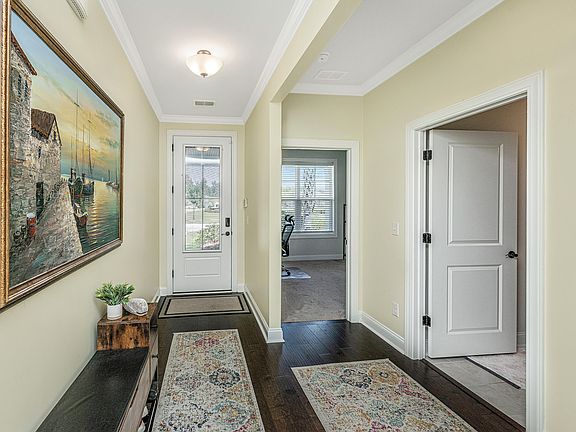Welcome to West Lake! As you enter through the Lowcountry front porch of the Madison floorplan, you immediately are greeted by the tranquil views of the fountain and pond. The entry way features tall ceilings and hardwood floors. This open concept living is not one to miss in this highly desirable one-story ranch floor plan. The kitchen includes a large island, stainless steel appliances, tile backsplash and a side pantry. The bright and open family room is accompanied by a gas fireplace. Notice the high-end finishes with cased in windows and crown molding throughout this home. The spacious Owner's Suite has a walk-in closet, garden tub, and double bowl vanities. There are two additional bedrooms that share a full bath and a junior suite with its own full bath.This home features a three-car garage, perfect for a golf cart and/or extra storage! Outback you can enjoy the beautiful sunset views in your fenced lot with a screened-in porch centered on the pond. This home is conveniently located across the street from the amenity center within short walking distance. West Lake stands out from other neighborhoods as it offers a resort-style amenity center including Pool with Sun-shelf, Pavilion, Outdoor Kitchen, Kayak Launch, Fishing, Fire Pit, Indoor Pickle Ball, Activity Area, Multi-Use Field, 300+ Acre lake, Miles of wooded trails, tranquil fountains on all the ponds. You are less than 10 minutes away from Cane Bay YMCA, Publix, Shopping, Dining, Gas Stations, Highly Rated Schools and more! Don't miss out on what lifestyle awaits you with this wonderful home in its own unique community inside Cane Bay Plantation. Lots of extras will convey with this Whaler Avenue Home. Full appliance package includes Stainless Steel refrigerator, dishwasher, gas range, microwave, mounted 55" Vizio TV over the fireplace and soundbar. Seller is also providing 240 square feet of matching hardwood for additional bedroom flooring options. Also, for fun, any decorative item featuring a whale will be conveyed with this Whaler Avenue home!