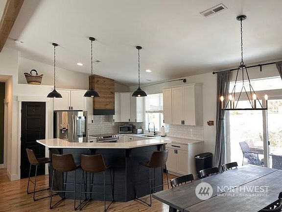 Like new cabin retreat located on a quiet cul-de-sac with territorial views in the desirable Roslyn Ridge Community. Inviting great room with soaring ceilings welcomes you home. Open kitchen with vaulted ceilings seamlessly connects to the dining room. Features include: 5 piece primary suite, hot tub with access from primary suite, oversized 3 car garage that can be used as a bonus room with its own fireplace. Community features include: activity center with pool, basketball court, tennis/pickleball court and more. Enjoy year round memories and fun, including miles of trails for biking or hiking in the summer or snowmobiling in the winter, swimming at Lake Cle Elum in the Summer, and just minutes to Suncadia for golf and restaurants.